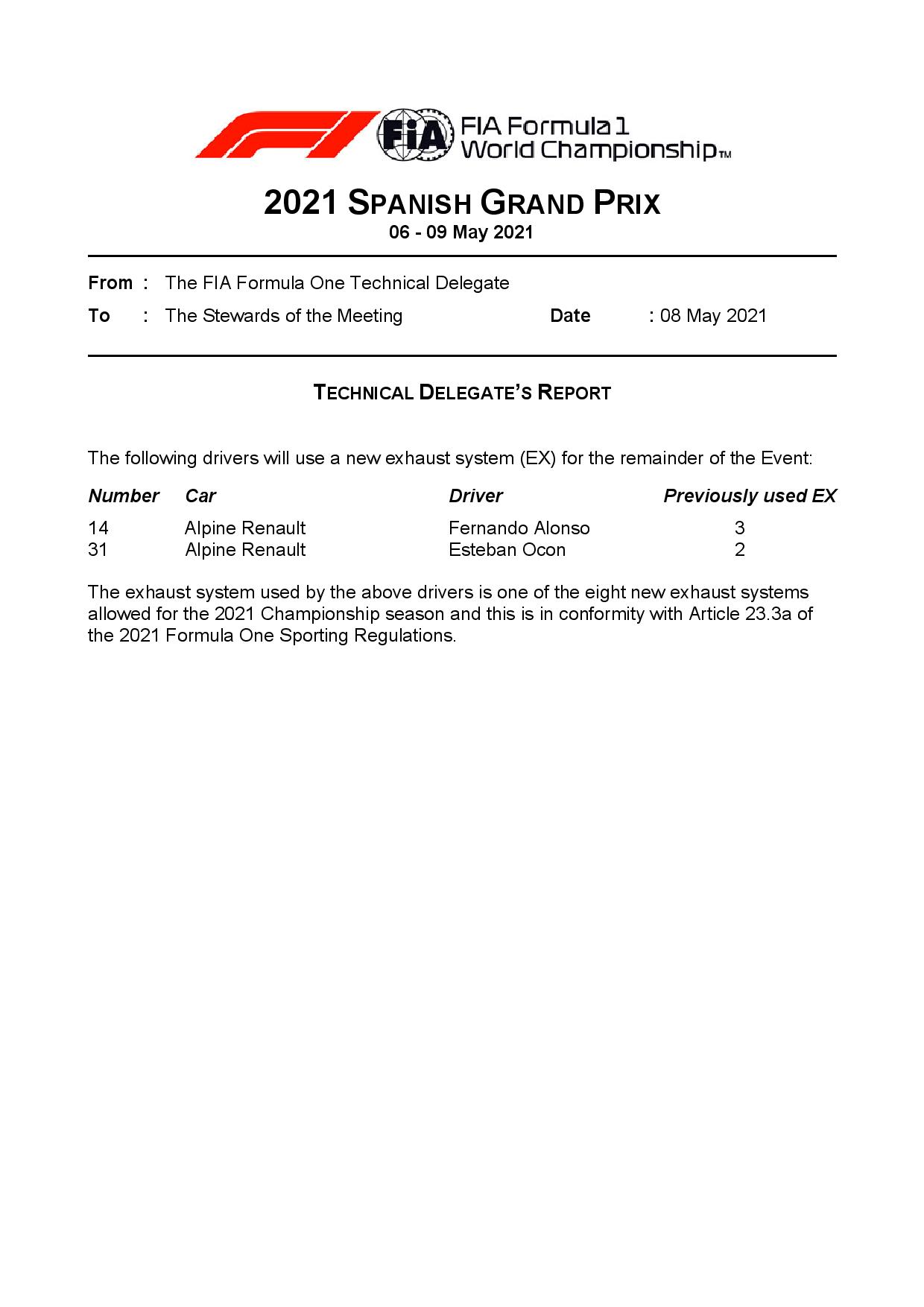 Pour info, il s’agit du troisième système d’échappement utilisé par Fernando Alonso depuis le début de la saison et du deuxième pour Esteban Ocon.