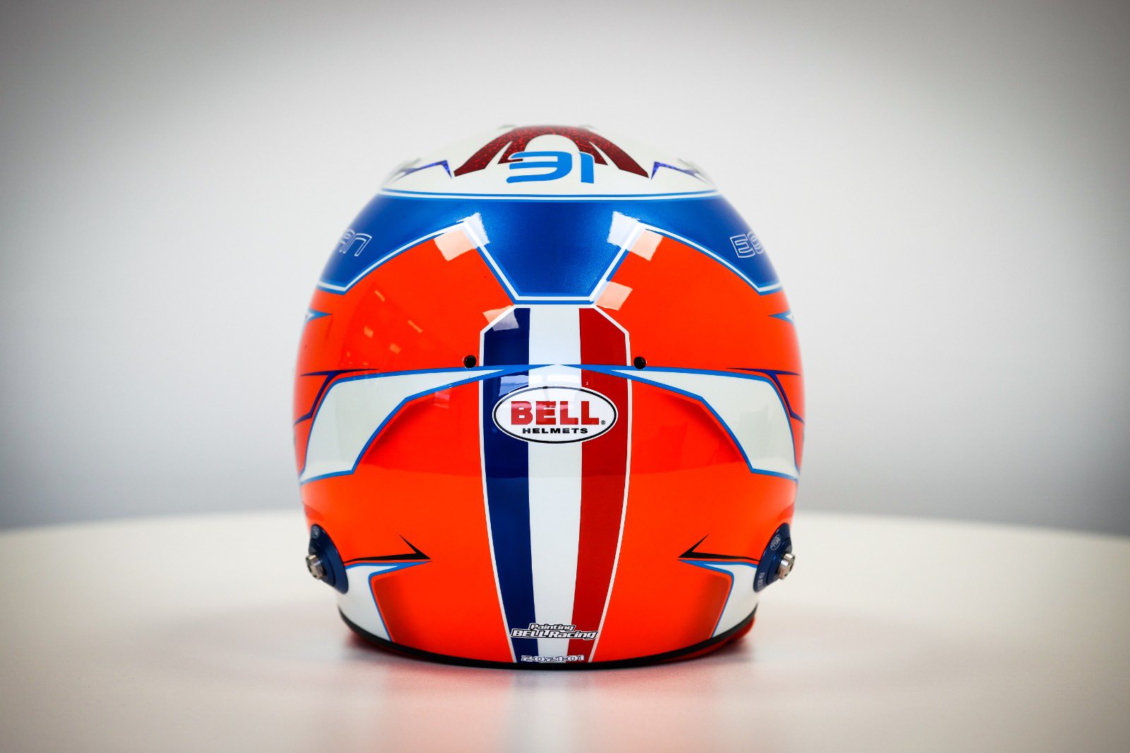 En parfait accord avec la livrée de sa monoplace présentée ce mardi (voir les photos ici), le casque d’Esteban Ocon arbore les couleurs de la France.