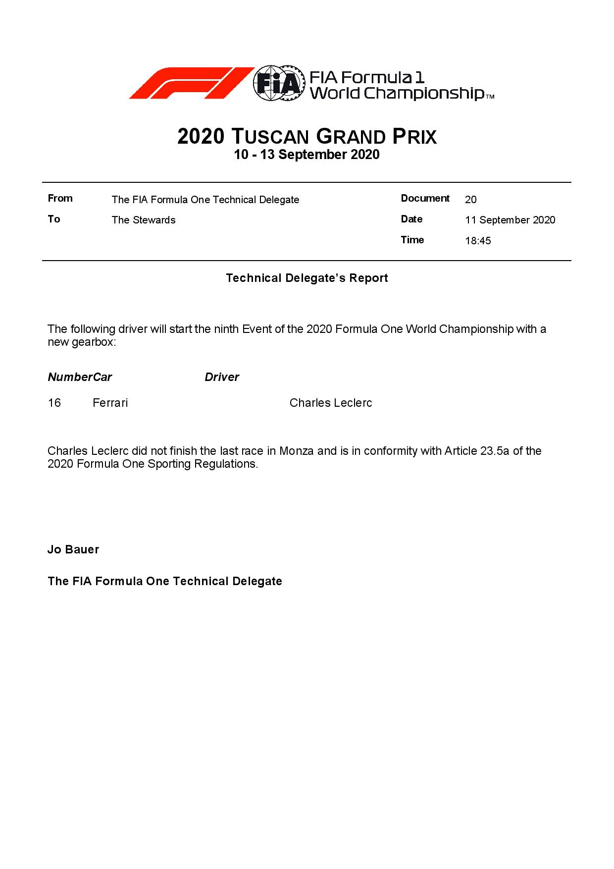 Le pilote Ferrari Charles Leclerc a débuté son week-end au Grand Prix de Toscane avec une boîte de vitesses neuve montée sur sa monoplace.
