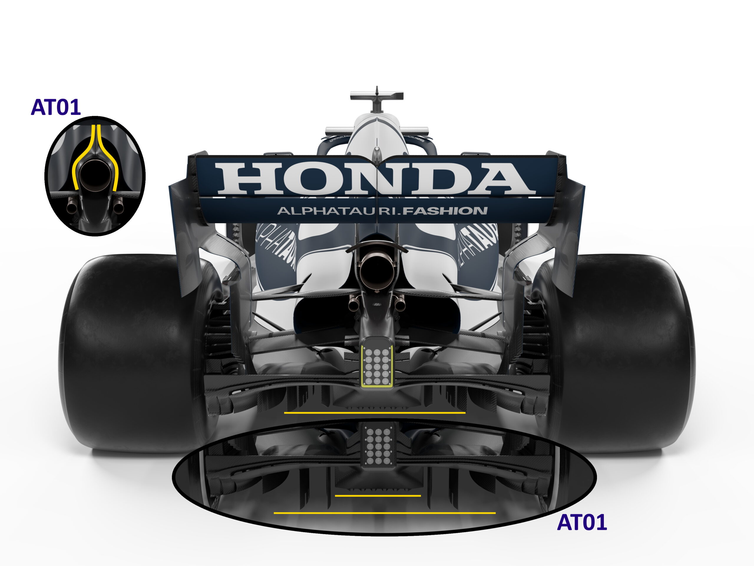 La suspension arrière reste inchangée par rapport à l’année dernière, même si AlphaTauri aurait pu implémenter la même suspension arrière que sa sœur aînée Red Bull sur sa voiture.