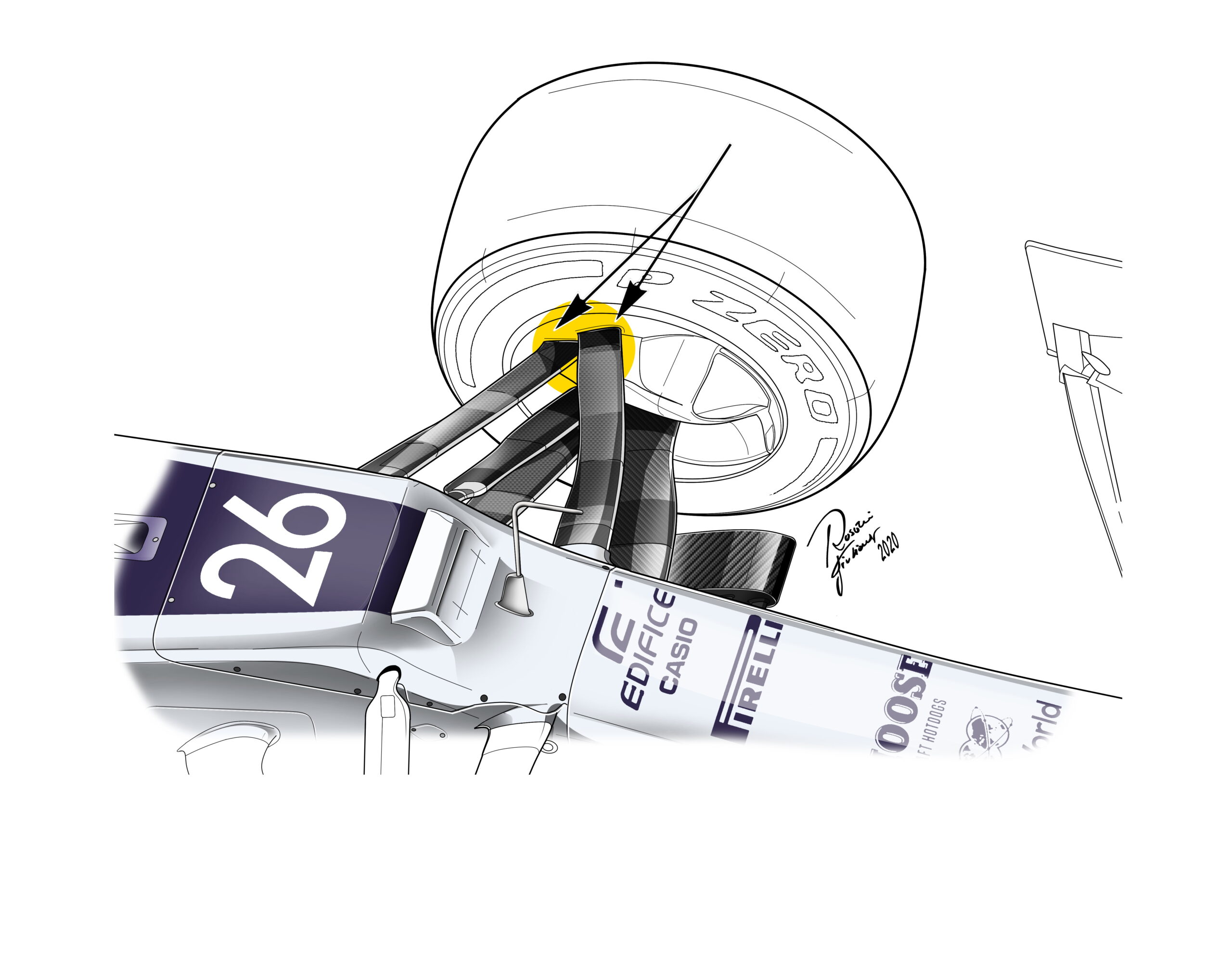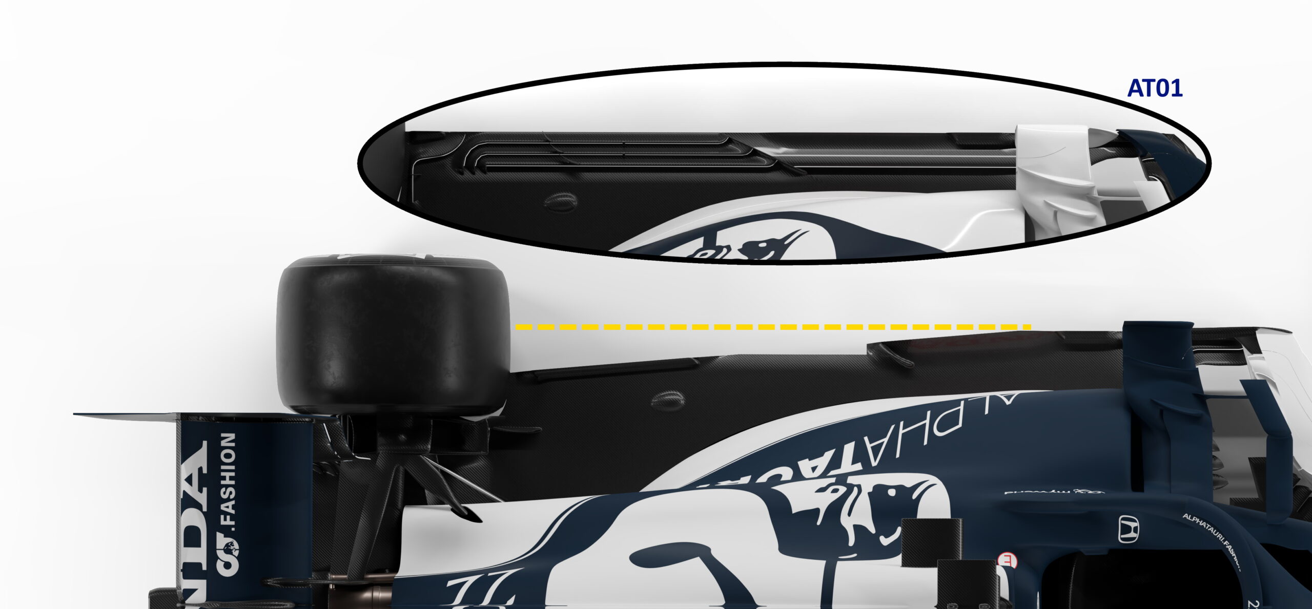 L’AT02 n’adopte pas la suspension avant Red Bull 2020 car, même s’ils avaient utilisé la dérogation pour modifier les éléments internes de la suspension qui ne coutait pas de jeton, ils auraient dû modifier les fixations du châssis, ce qui aurait alors nécessité l’utilisation de deux jetons.