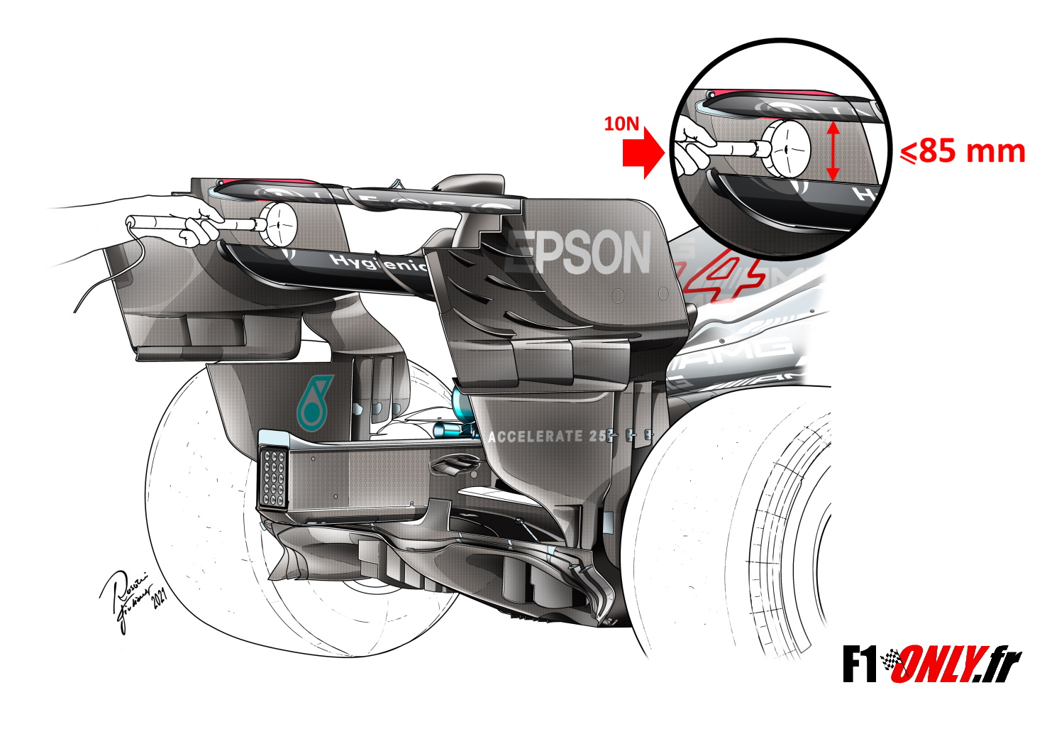 Pourquoi et comment l’aileron de la Mercedes a été jugé non conforme ?