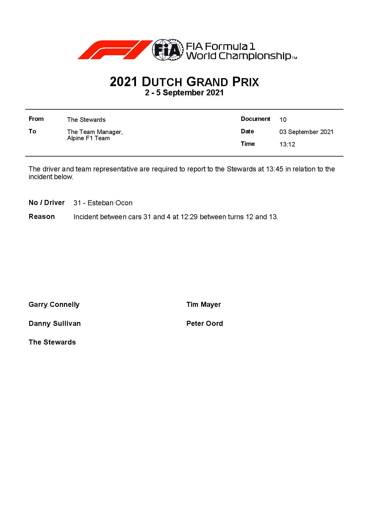 Esteban Ocon et Lando Norris ont tous les deux été convoqués chez les commissaires de course du Grand Prix des Pays-Bas ce vendredi à l’issue de la première séance d’essais libres.
