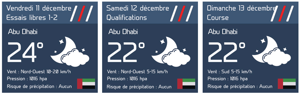 Voici le bulletin météo pour le Grand Prix d’Abou Dhabi, dix-septième manche de l’année qui se dispute ce week-end sur le tracé de Yas Marina.
