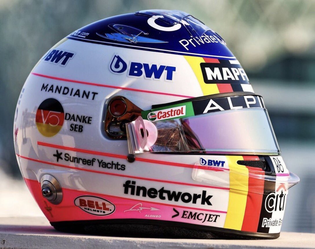 Alonso avec un casque hommage à Sebastian Vettel à Abou Dhabi