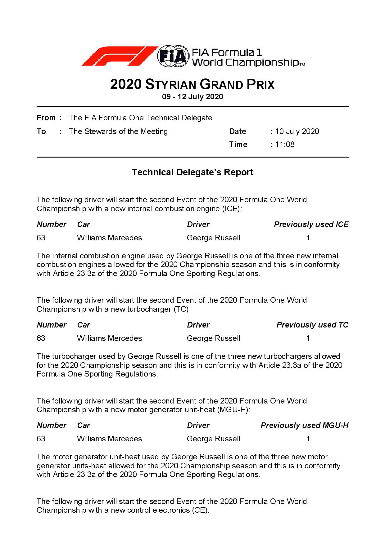 Avant le Grand Prix de Styrie, la monoplace de George Russell a reçu un nouveau moteur à combustion interne, un nouveau turbo et un nouveau MGU-H, alors que le Britannique a dû abandonner en course la semaine dernière au Grand Prix d’Autriche sur défaillance mécanique.