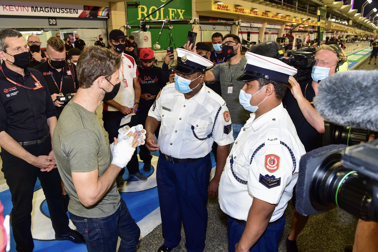 Romain Grosjean de retour dans le paddock de Sakhir