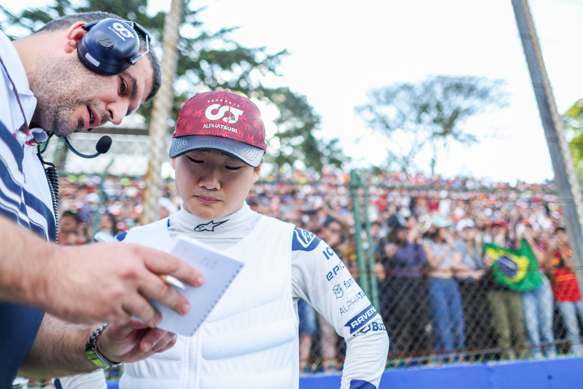 Départ depuis la voie des stands pour Tsunoda au Brésil