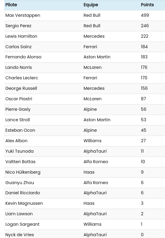 Derrière, George Russell, Charles Leclerc, Yuki Tsunoda, Lewis Hamilton, Carlos Sainz, Daniel Ricciardo et Oscar Piastri complètent le top dix à l’arrivée, mais seuls les huit premiers ont inscrit des points lors de ce Sprint.