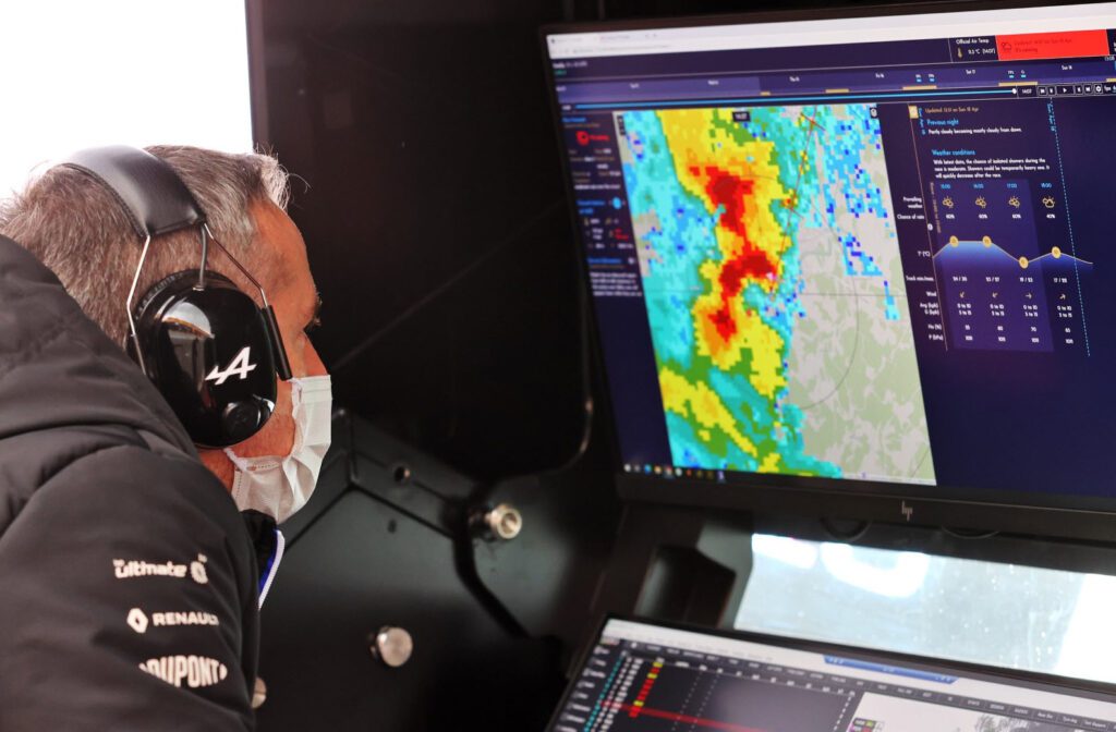 Le samedi et le dimanche matin, en cas de conditions météorologiques significativement changeantes, Faïssal nous explique qu’il entreprend une série de discussions avec l’ingénieur de Météo France présent sur le circuit. Contrairement aux écuries de pointe, l’équipe Haas ne dispose pas de sa propre station météo sur le muret. Pour compenser, elle se base sur la température de la piste fournie par Pirelli toutes les 15 minutes, ainsi que sur les observations des différentes stations de Météo France réparties aux quatre coins du circuit, accessibles via le portail de Météo France dédié à la Formule 1. En cas de besoin, d’autres radars de pluie disponibles sur d’autres sites peuvent également être consultés.