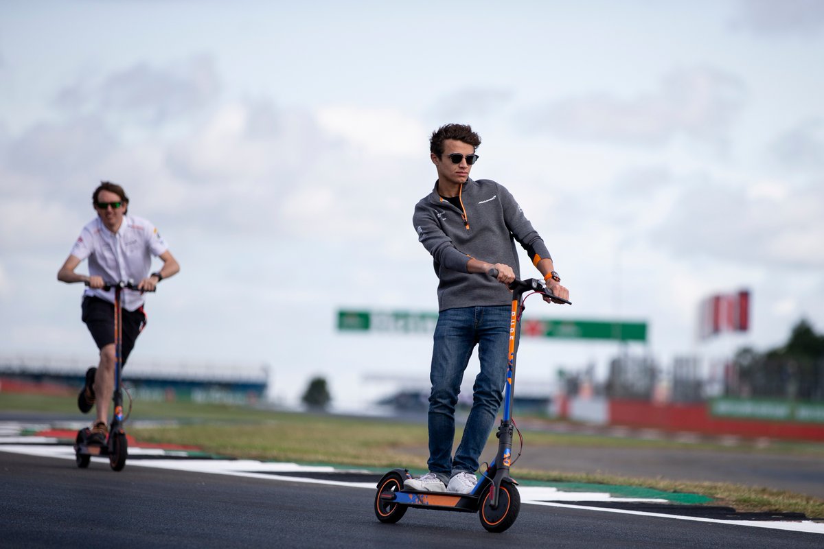 A ce petit jeu de la trottinette , le pilote McLaren Lando Norris se fait particulièrement plaisir au début de chaque week-end de course et n’hésite pas d’ailleurs à jouer avec les photographes lorsqu’il effectue le tour des circuits au guidon de son petit bolide.