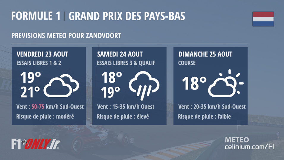 Météo GP F1 des Pays-Bas : une alerte de vent violent en vigueur