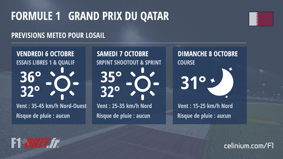 Météo GP F1 du Qatar : Des conditions extrêmes attendues à Losail