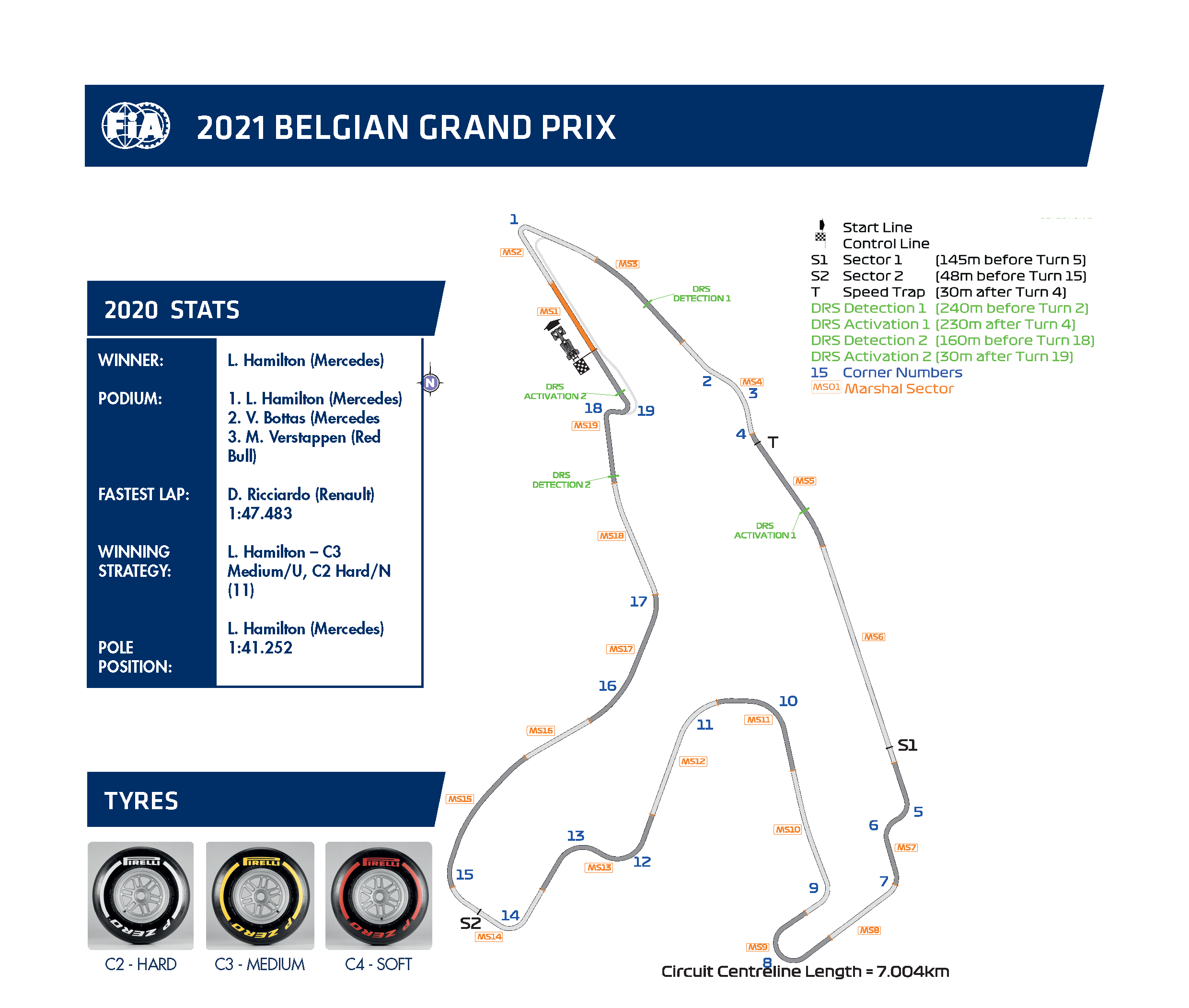 Ces changements mineurs concernent certains virages du tracé belge – le numéro 2, le numéro 7 et le numéro 14 – où des modifications ont été apportées sur les vibreurs afin de rendre les limites de piste un peu plus « naturelles ».