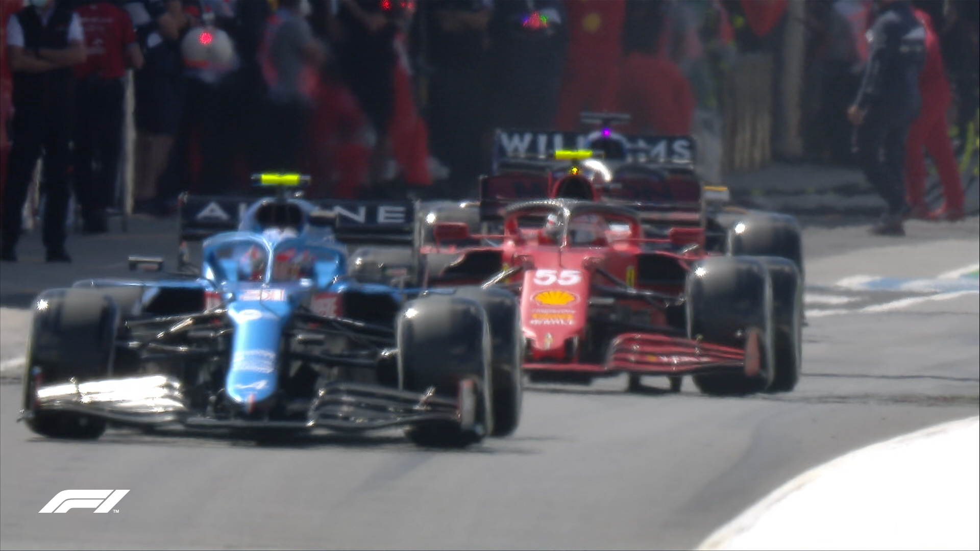 Dès le début de la séance, l’Alpine d’Esteban Ocon a perdu un gros morceau de carbone en plein milieu de la voie des stands.