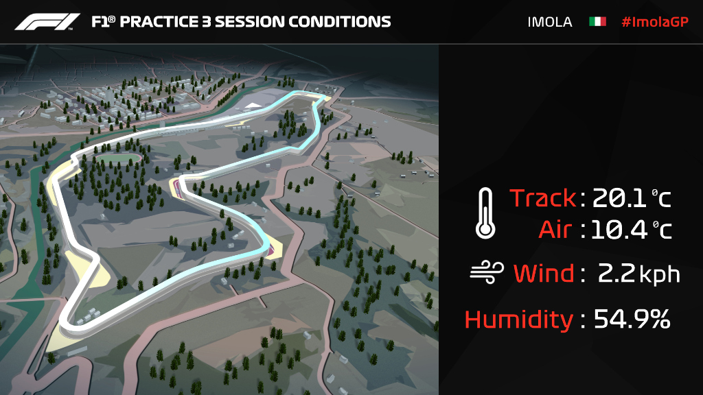 Les conditions de piste n’étaient pas idéales ce samedi matin à Imola avec une température de l’air d’à peine 10°, tandis que la piste étaient à 20°.