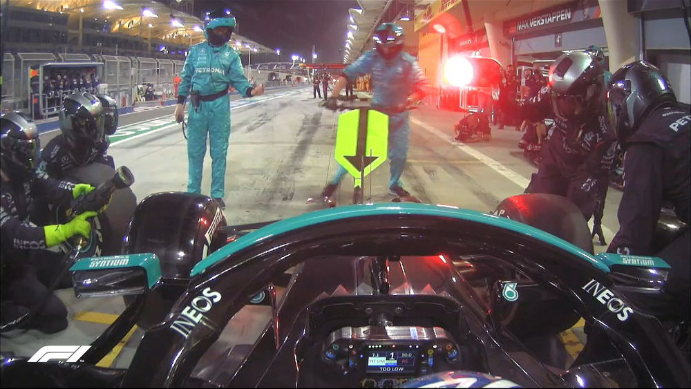 Au 31e tour de course, le pilote Mercedes Valtteri Bottas a perdu plus de dix secondes lors de son arrêt au stand en raison d’une roue avant droite impossible à décrocher pour le mécanicien.