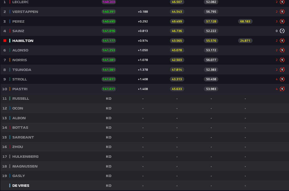 Derrière, Carlos Sainz, Lewis Hamilton, Fernando Alonso, Lando Norris, Yuki Tsunoda, Lance Stroll et Oscar Piastri complètent le top dix sur la grille de départ de cette quatrième manche de l’année.