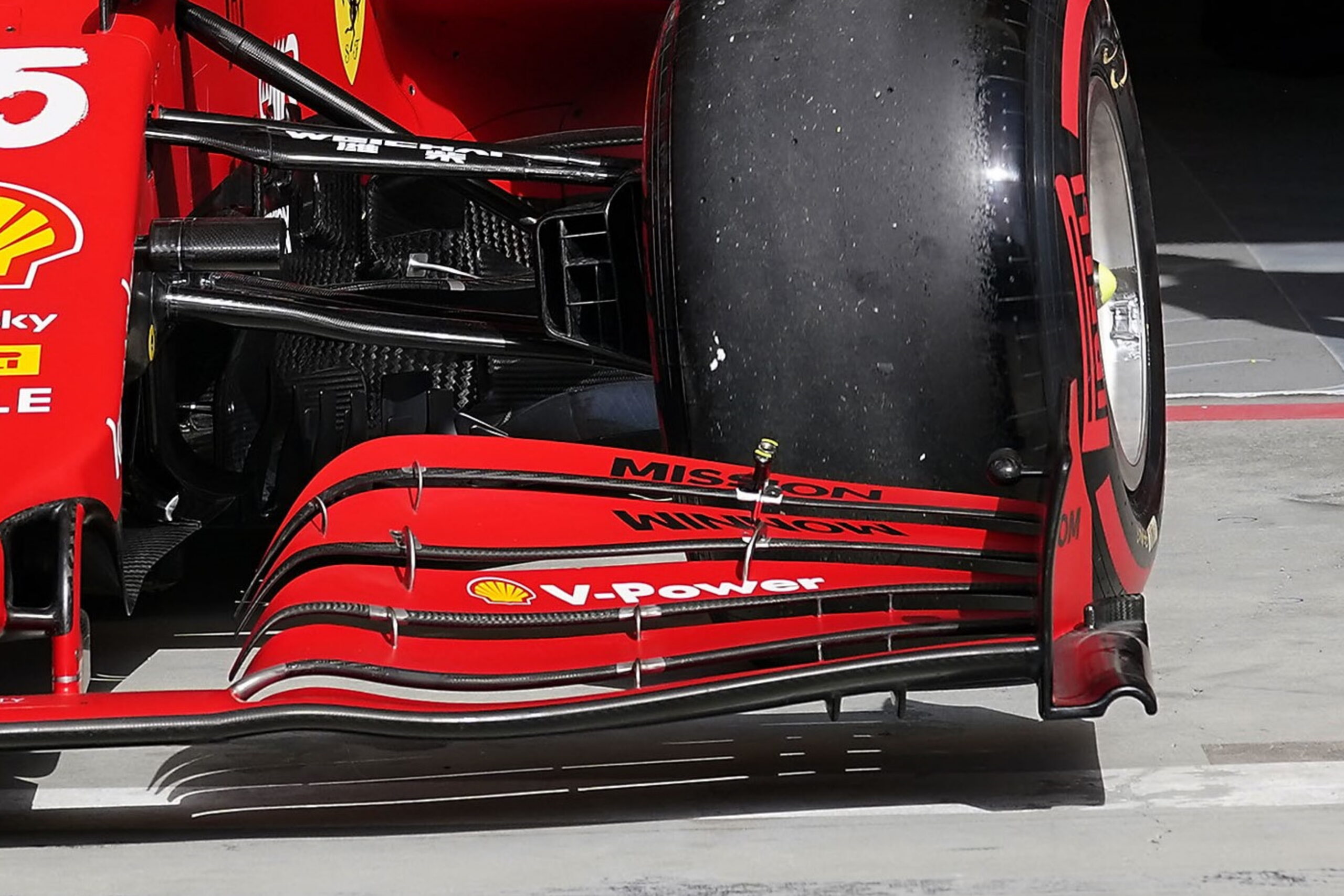 Au départ, Ferrari voulait travailler avec un aileron avant avec moins d’appui qu’à Bahreïn et des modifications sur le museau étaient également prévues, mais elles ont été apparemment reportées pour le GP du Portugal sur la piste de Portimao.