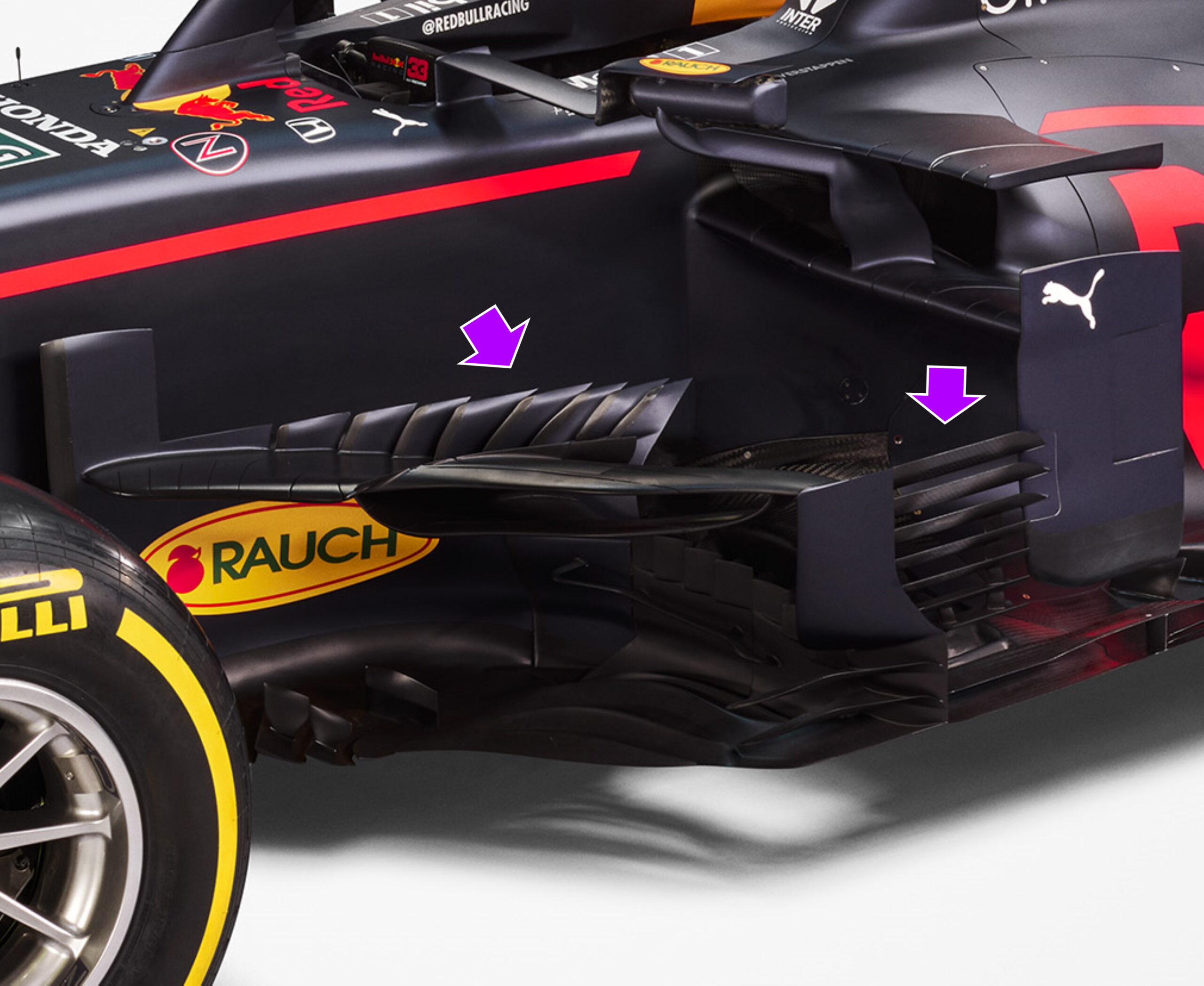 Ce joyau d’Adrian Newey, unique parmi toutes les monoplaces de la grille, peut être vu sur le dessin ci-dessous.
