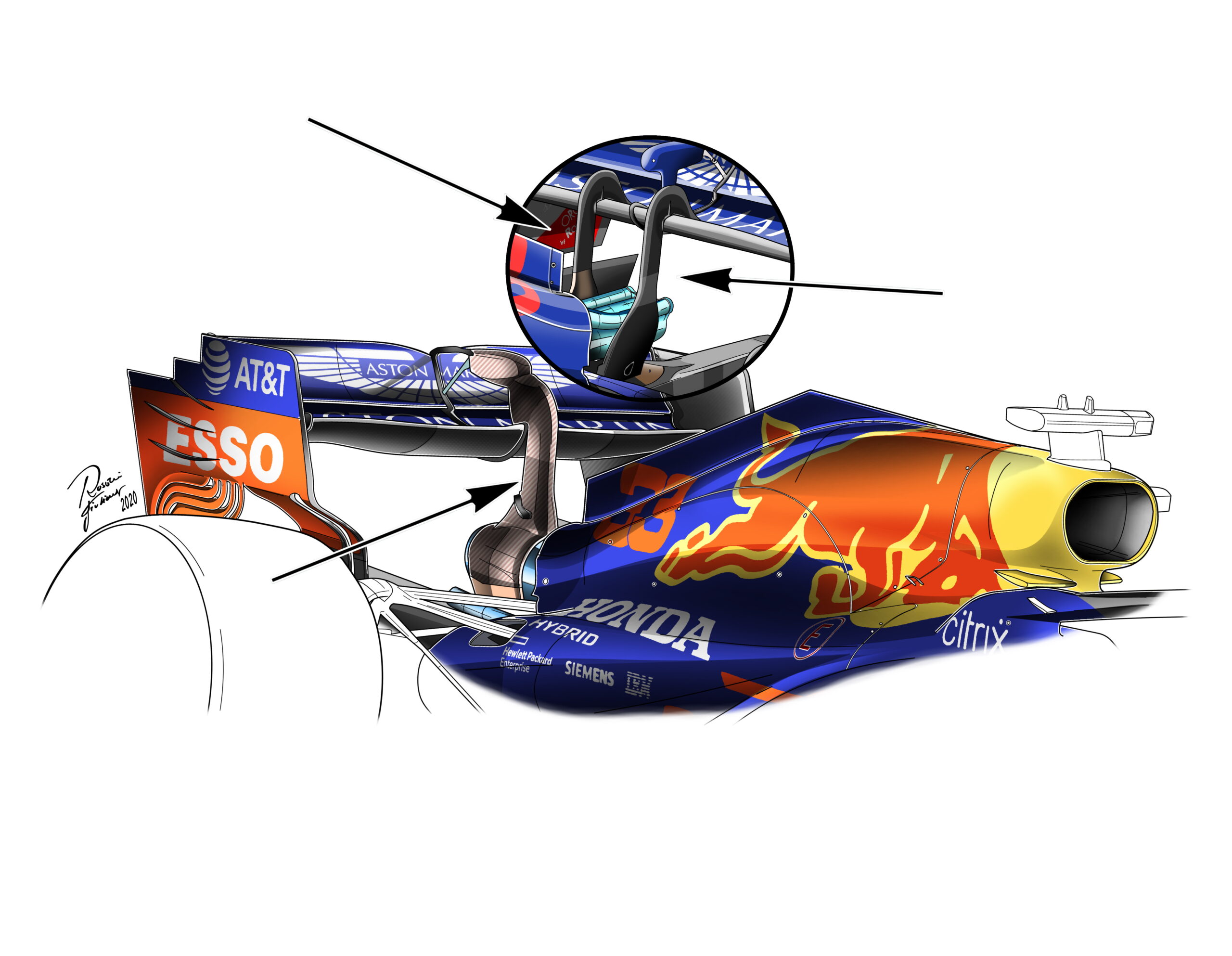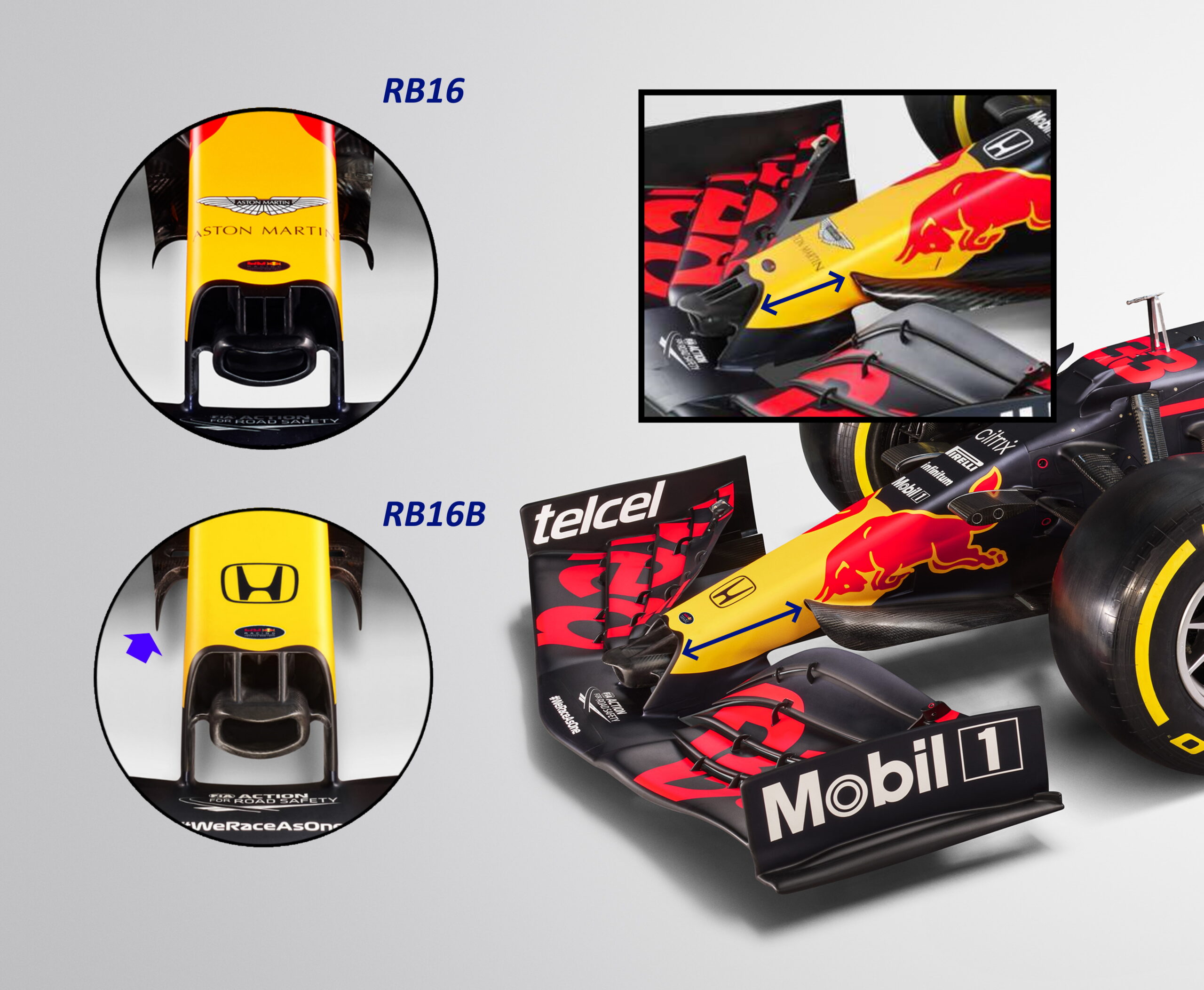Cependant, déjà pendant les essais libres du Grand Prix de Bahreïn en novembre, la solution mono-pylône a été testée sur la RB16, et a ensuite été réessayée à Yas Marina en vue de 2021.