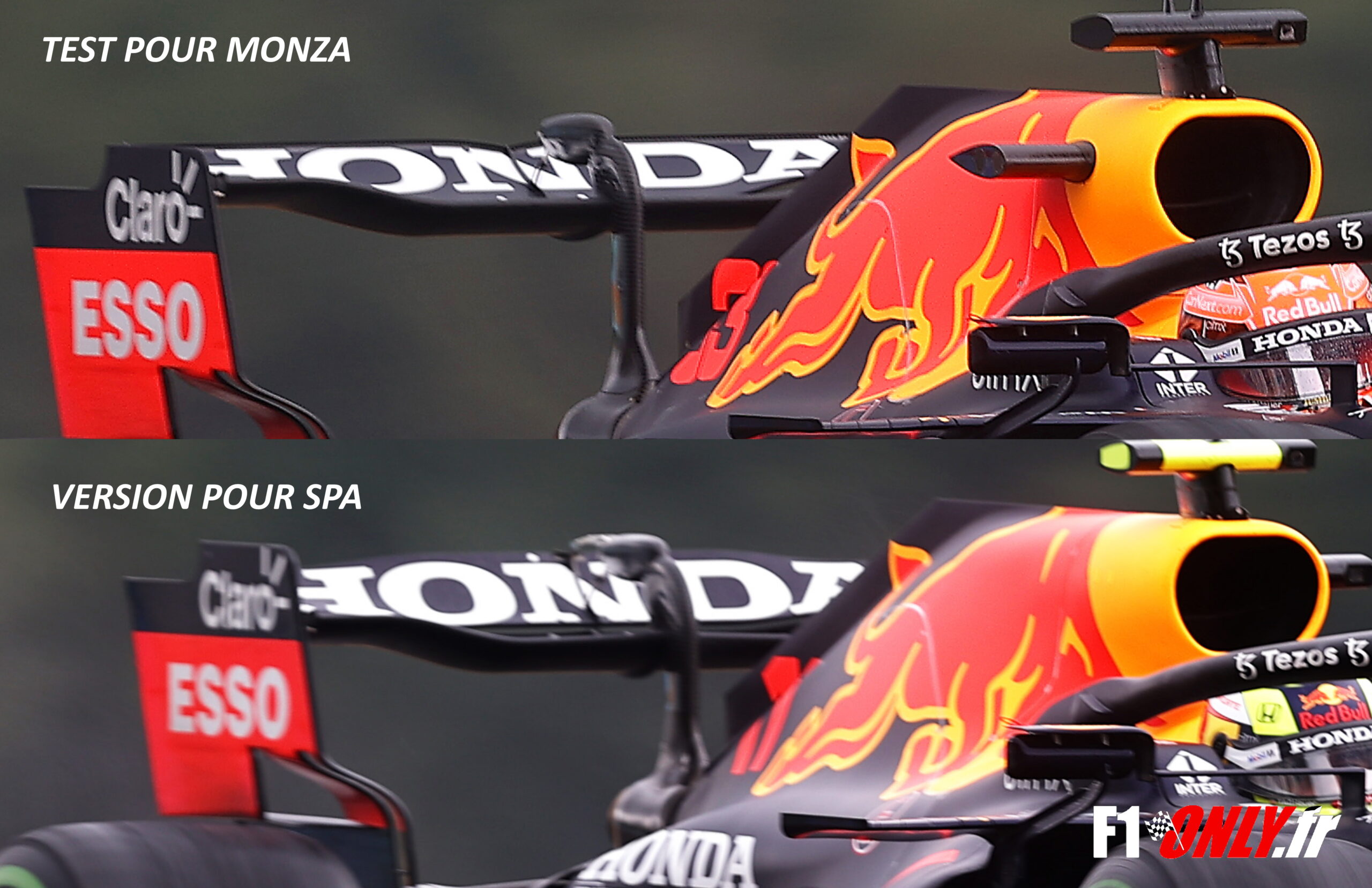 Spa-Francorchamps est une piste qui a tendance à favoriser ceux qui utilisent peu d’aileron afin d’exploiter les vitesses maximales dans les secteurs 1 et 3, sacrifiant la partie sinueuse dans le secteur 2. Cependant, toujours au sujet des ailerons arrière, l’équipe de Milton Keynes a décidé de profiter de l’accident lors du tour de mise en grille de Sergio Perez avant la course pour monter un aileron plus chargé sur la voiture numéro 11.
